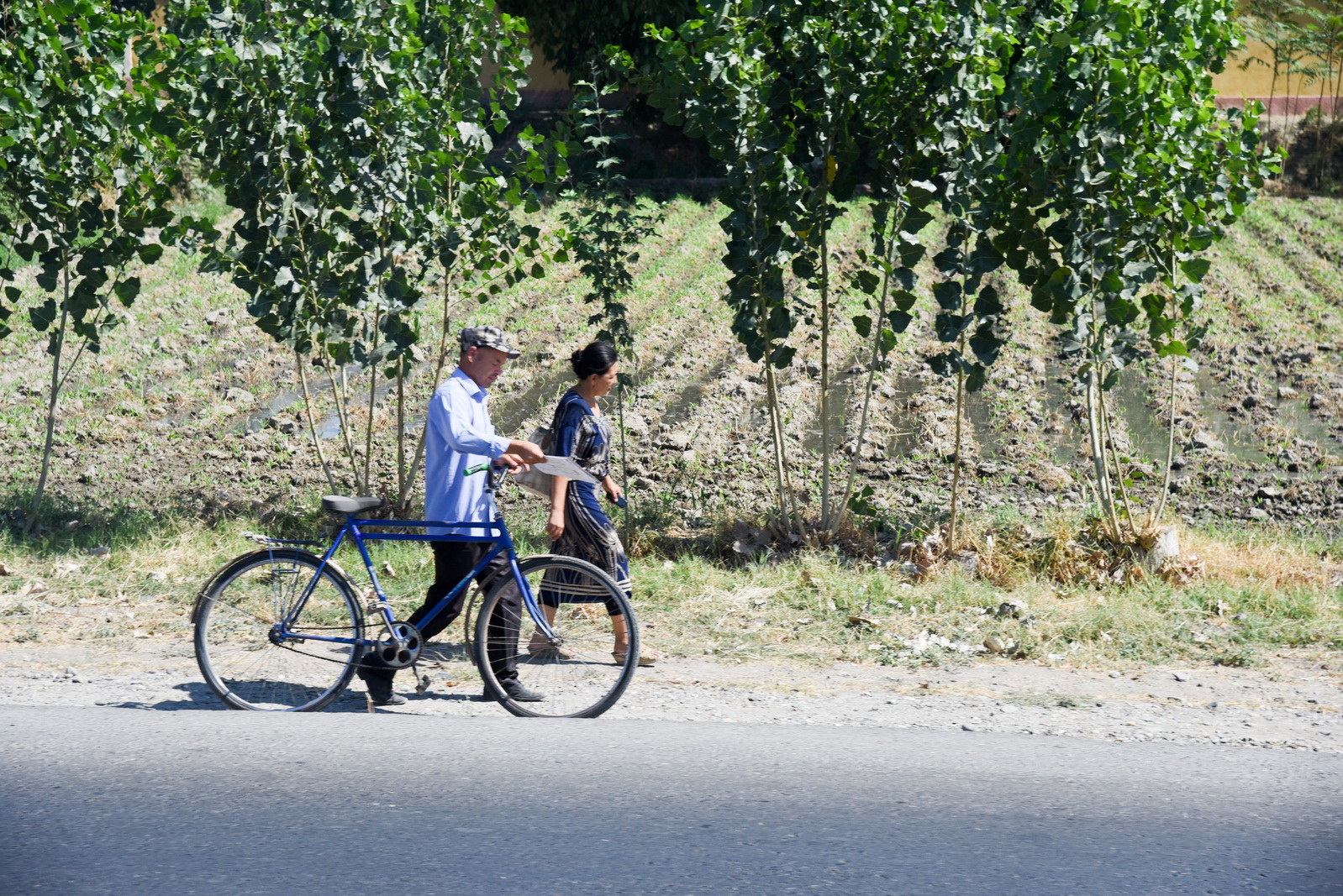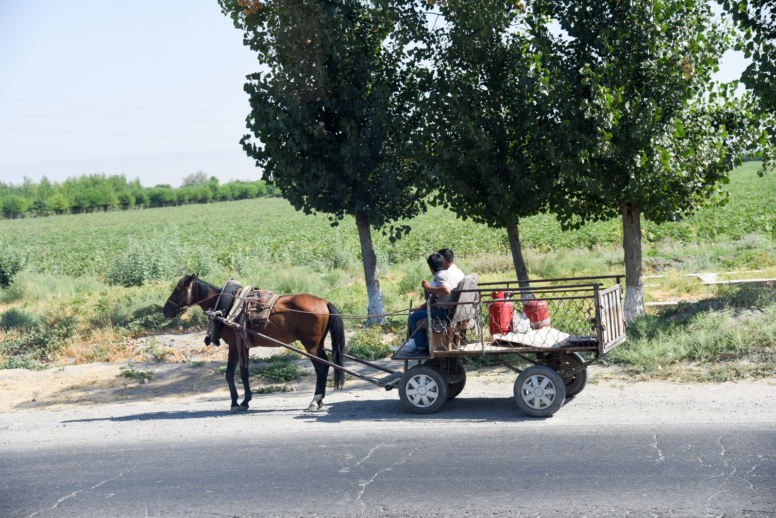 지도를 보면 부하라에서 사마라칸트까지 직선 코스를 달리지 않는다. 부드럽게 호를 그린다. 이것은 두 도시 사이를 흐르는 제라프샨 강 때문이다. 제라프샨 강을 따라 녹지대가 분포하고 농업이 이루어지고, 사람들이 거주하고, 도시가 있기 때문에 도로가 그러한 거점들을 연결하고 있기 때문이다.