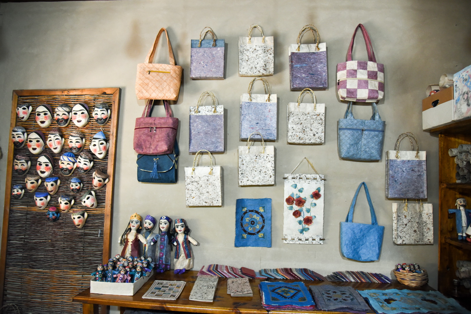 우리나라 전통 종이는 닥나무를 이용하지만 이곳에서는 뽕나무를 이용한다. 둘 다 같은 집안의 나무들이므로 큰 차이는 없는가부다.