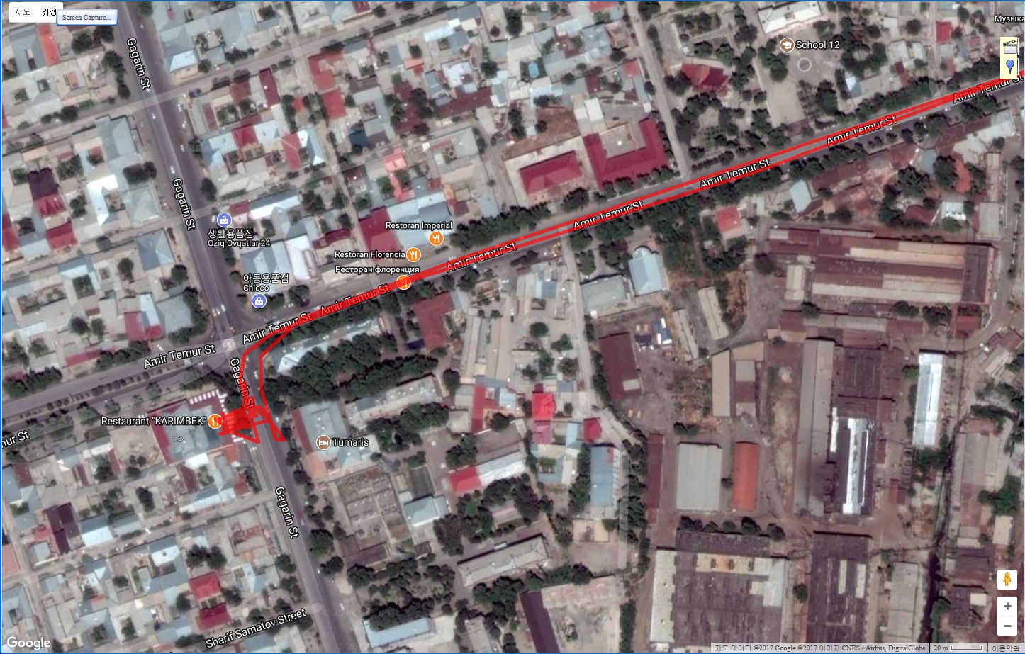 사마르칸트 시내를 관통하여 식당을 찾았다. Karimbek. 2층으로 된 근사한 식당이다.