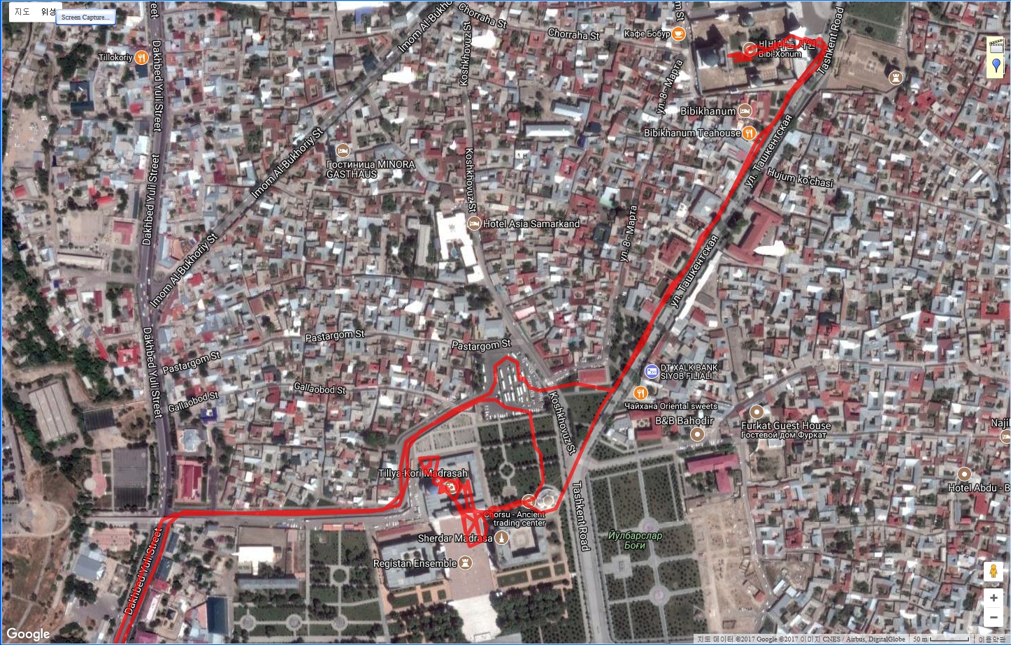 사마라칸트 시내를 진입하면서 종이공장을 먼저 들렀다. 울르그벡 천문대, 아프로시압 박물관을 들른 후 서쪽으로 쭈욱이 아니라 조금 돌아서 달렸다. 점심식사.