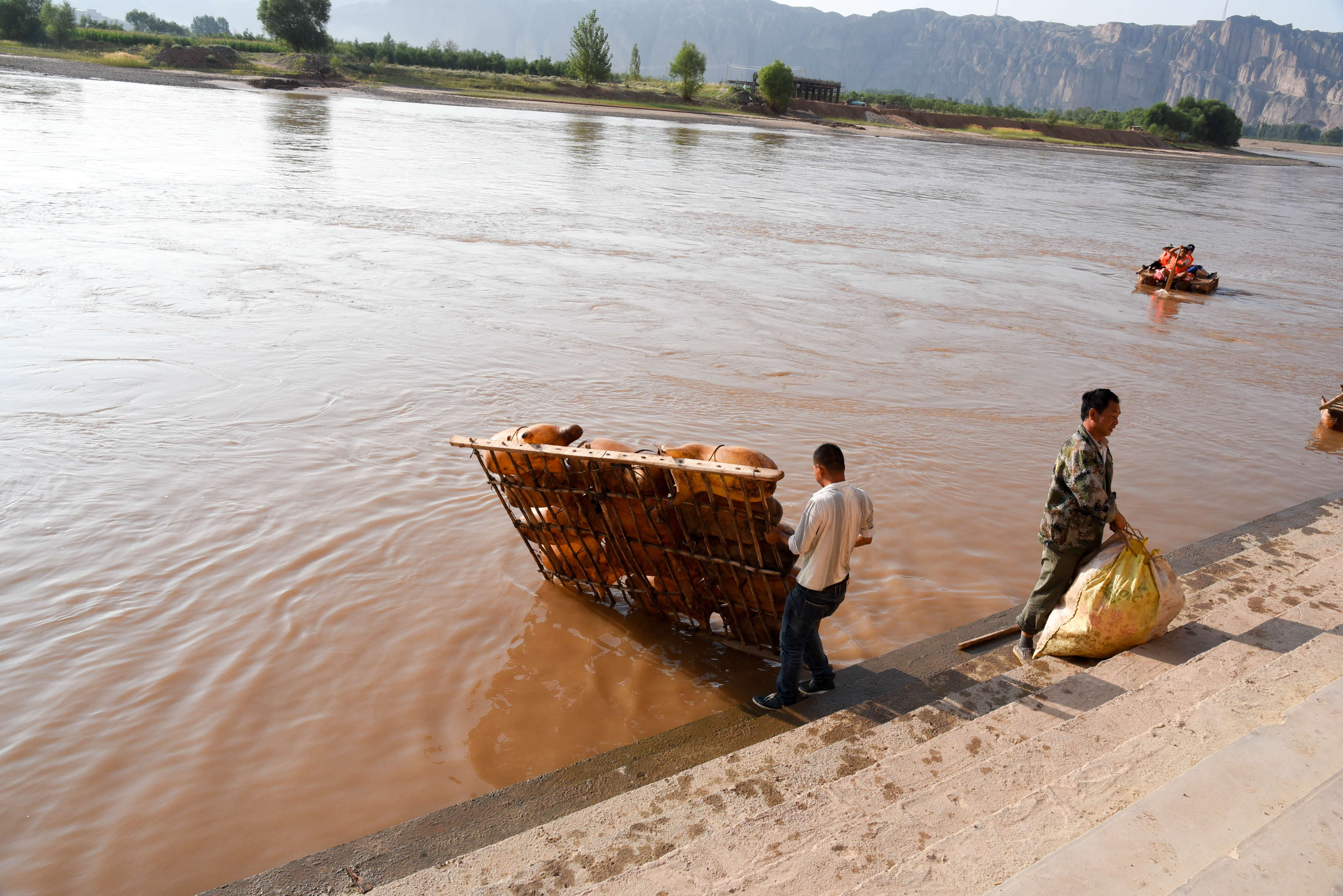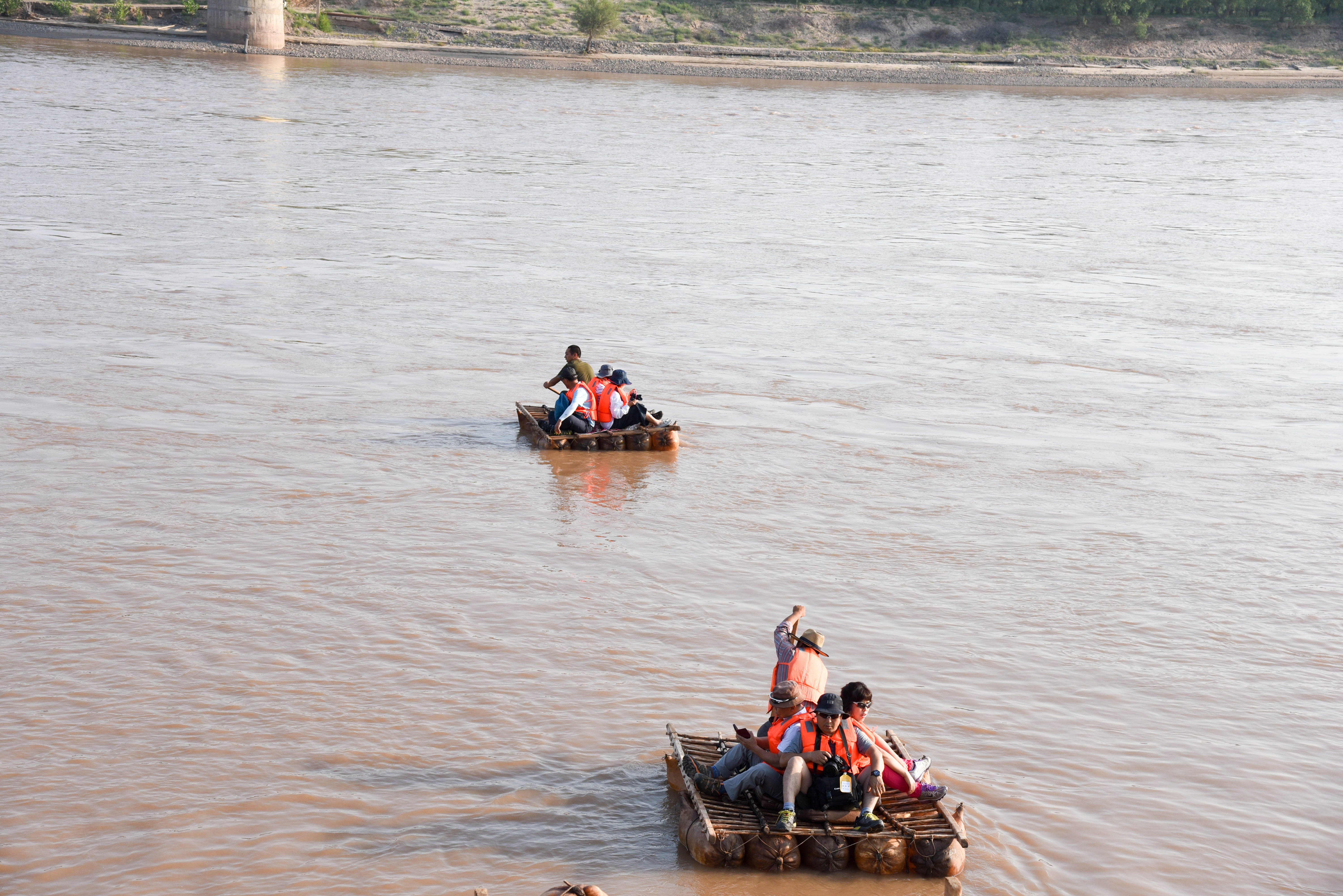 12마리의 양가죽이 사용되었다. 그렇게 믿음직스러운 것은 아니지만 구명조끼를 입고 '승선'하면, 뗏목은 황하를 따라 천천히 흘러 내려간다. 한 척당 3명씩 승선하였다.