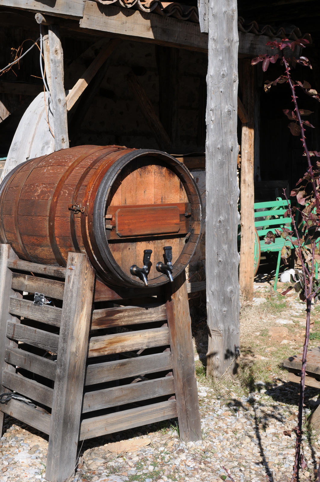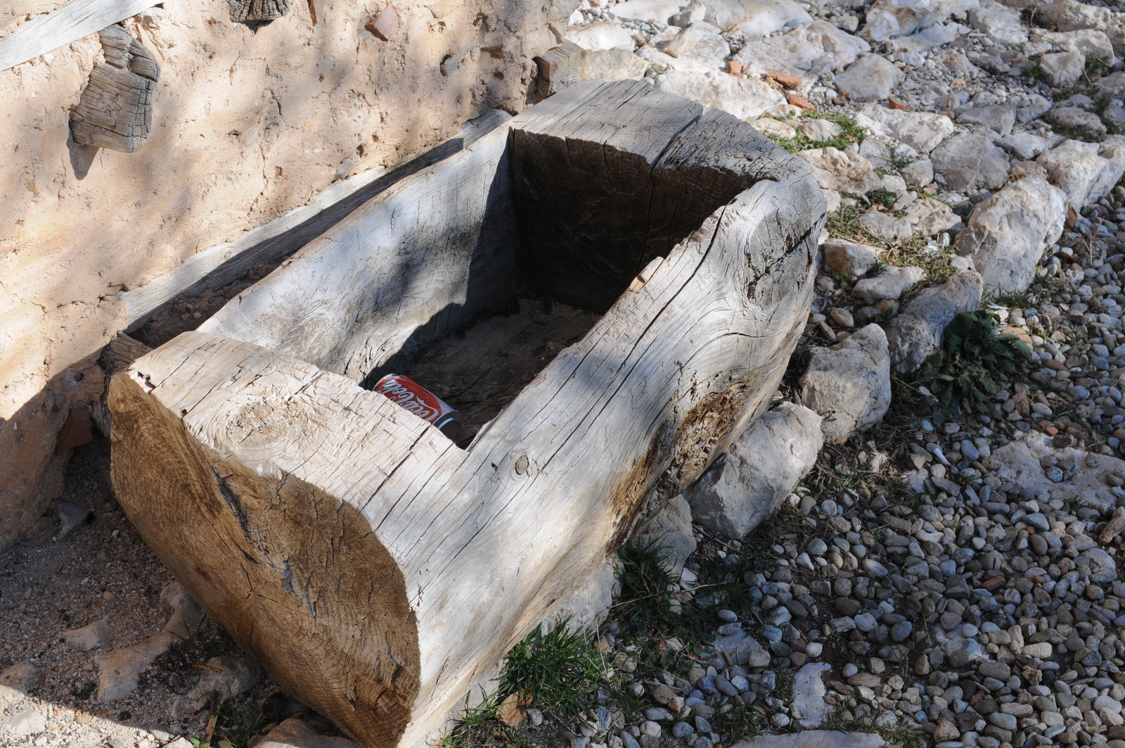 커다란 통나무로 만든 구유. 코카콜라 캔이 담겨 있다.