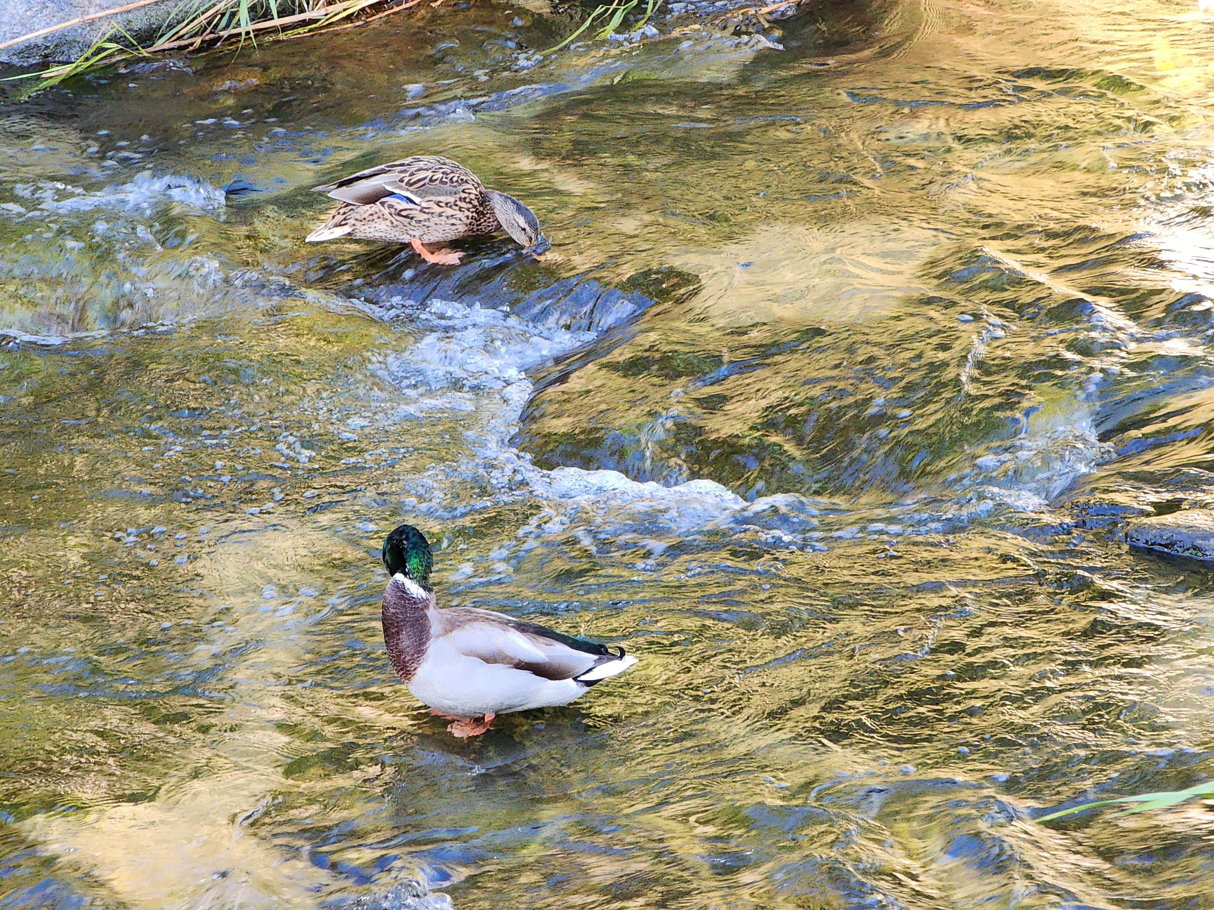 당현천을 따라 다시 올라오다가 만난 청둥오리 한쌍.