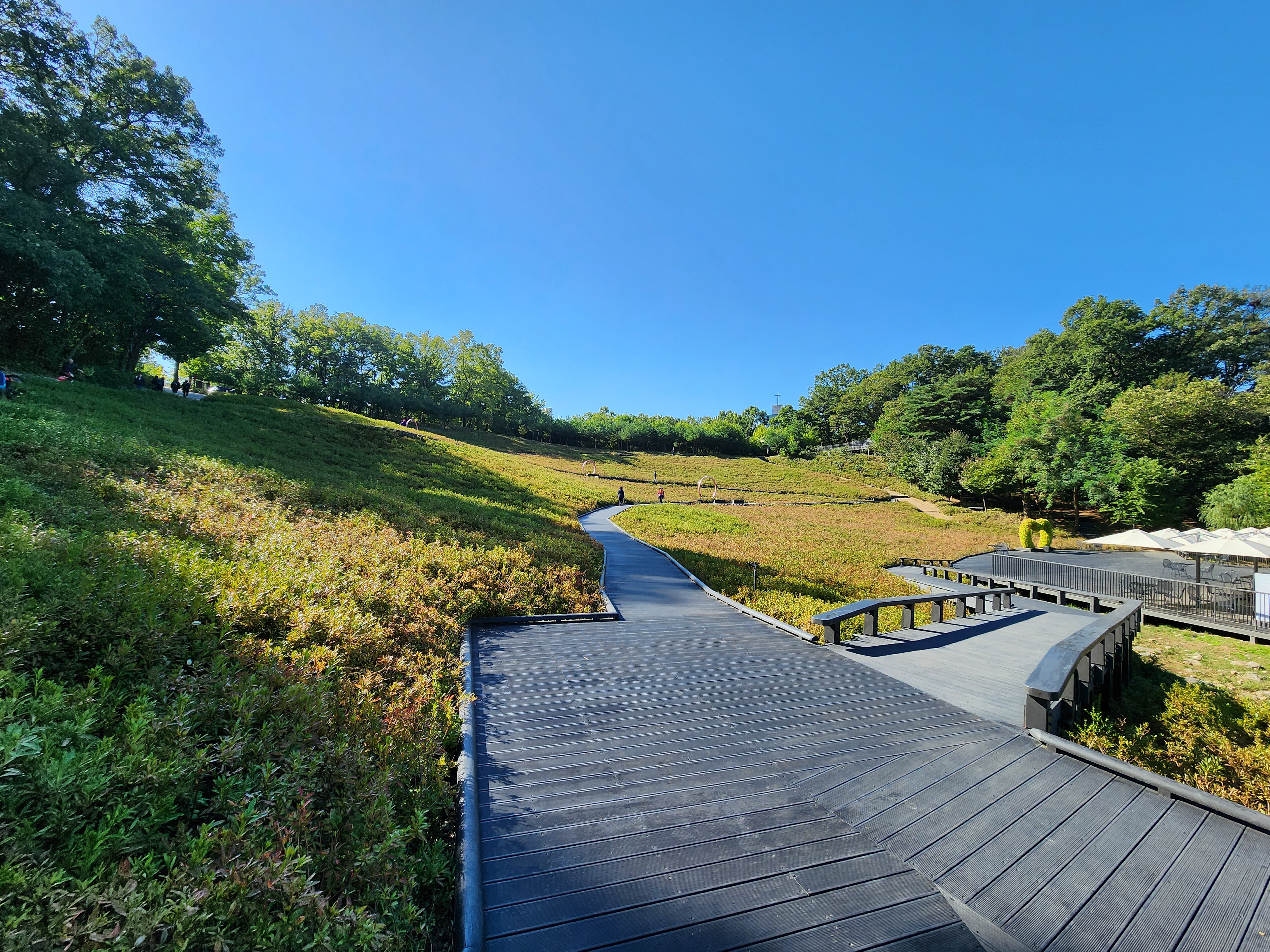 핀 꽃이 없는 철쭉동산에 마련된 데크 길을 따라 걷는다.