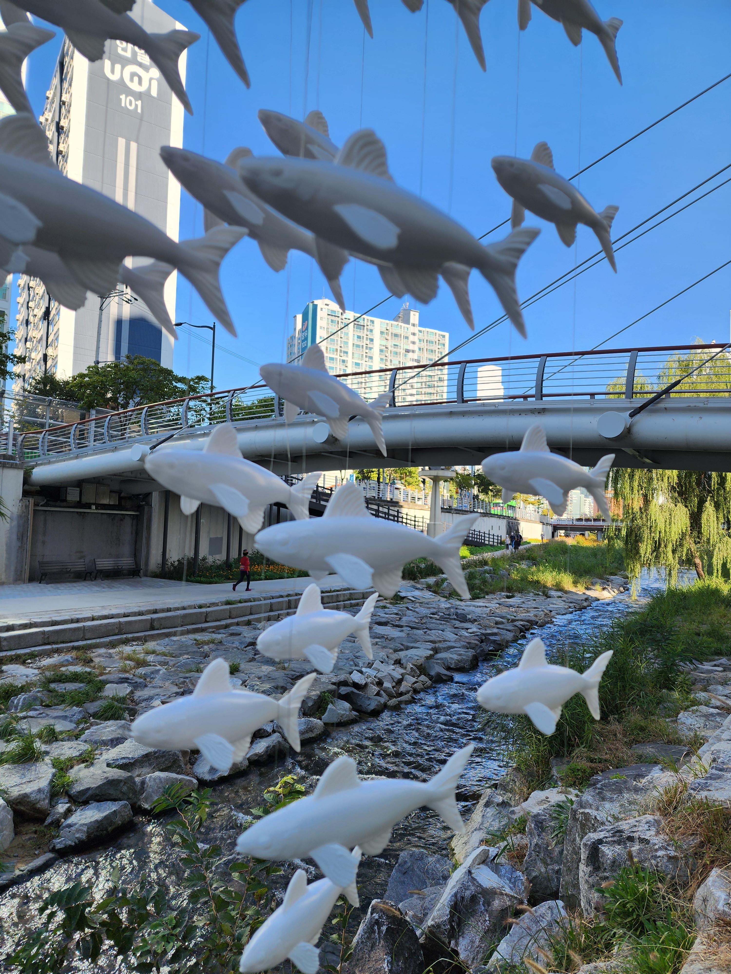 당현천을 따라 다양한 조형물들이 전시되기 시작한다.