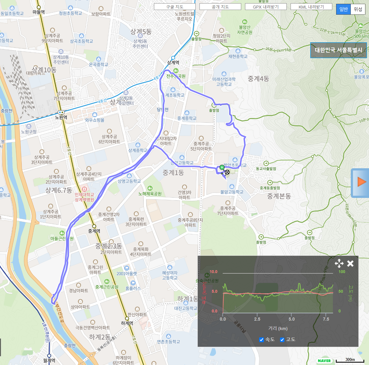 당현천을 따라 계속 올라와 상계역을 지나 불암산 아래 위치한 노원 힐링타운으로 들어왔다.