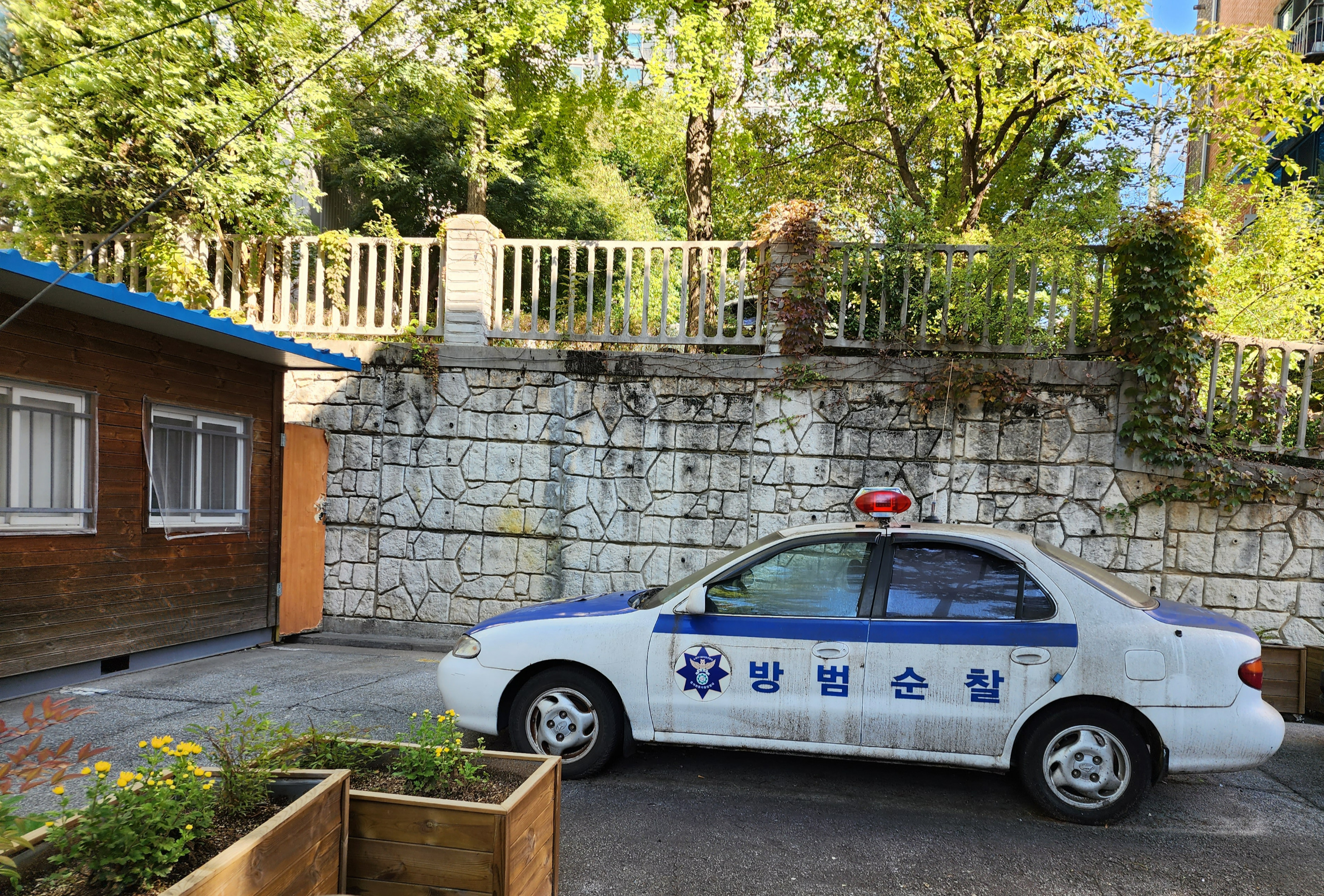 불암초등학교 후문 부근에 작은 공원이 있고, 그 옆에 순찰차가 정차되어 있다. 계속 정차되어 있다. 언제적부터인지 기억에도 남아 있지 않다. 바퀴도 주저앉아 있다. 아무래도 버려진 것 같다.