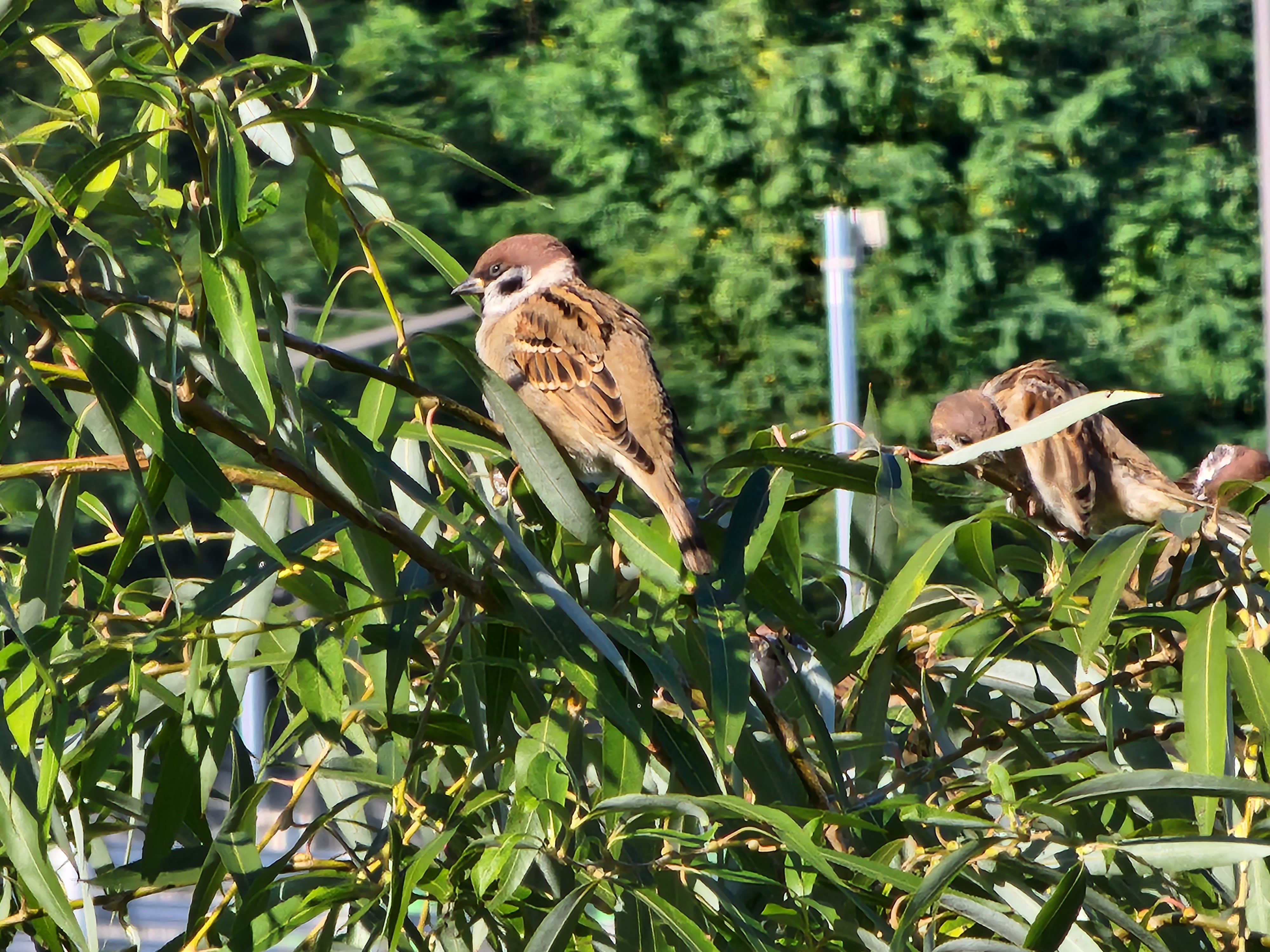 쉼터 바로 앞에 있는 나무가 소란스럽다. 수많은 참새들이 모여 앉아 하루 일과를 준비하는 것 같다. 일조점호??