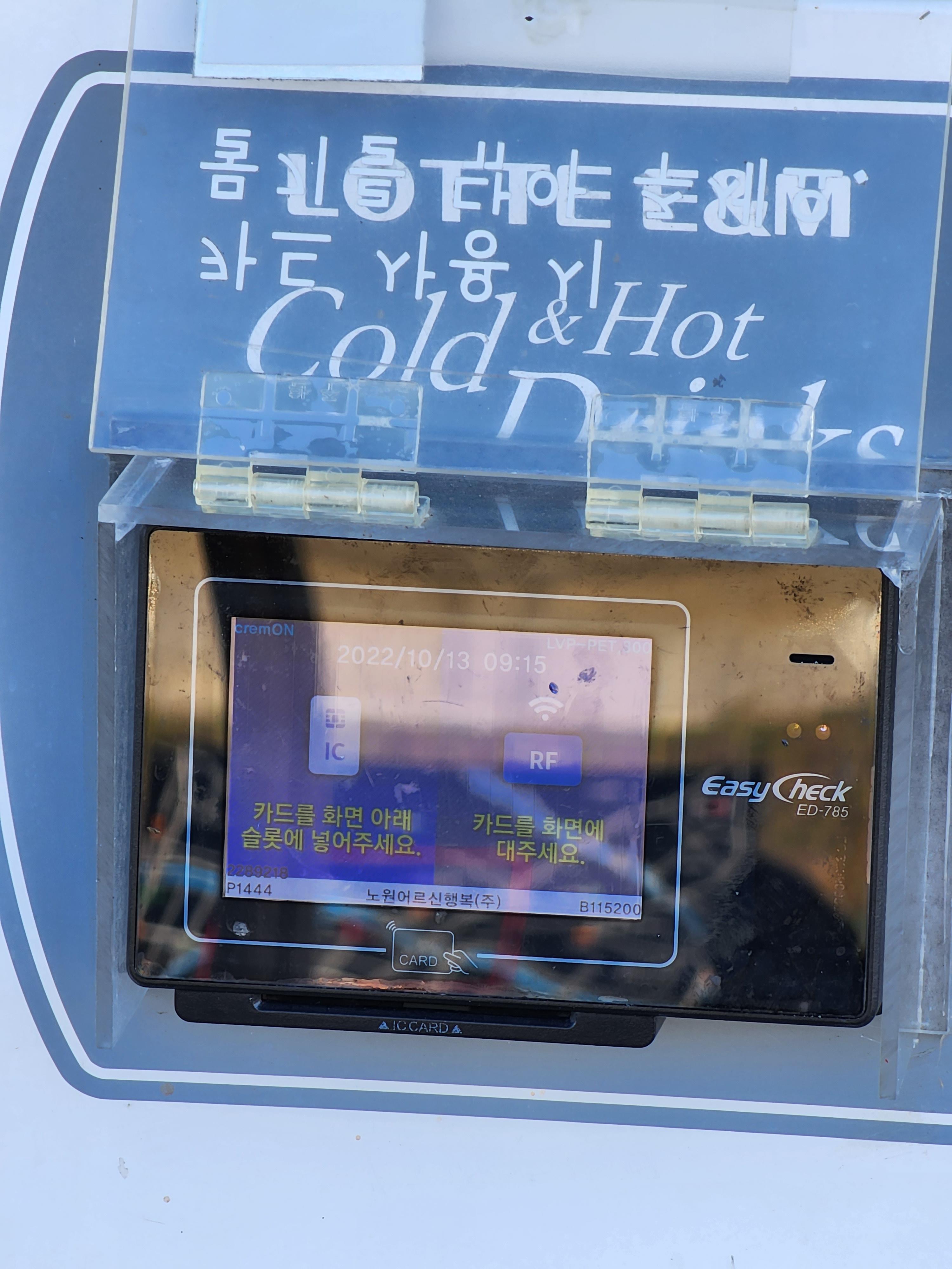 쉼터에 있는 자판기를 살펴보았다. 혹시나 했는데 역시나 이다. 카드 사용이 되는구나. 넥스트 타임~~