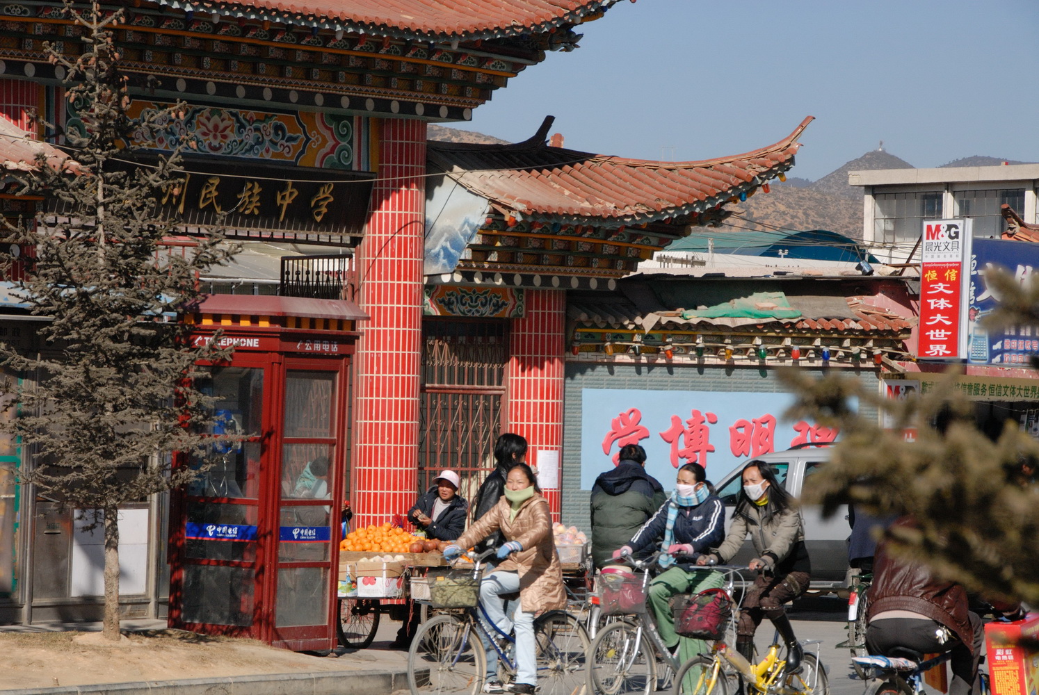 중전, 샹그릴라 시내로 들어왔다. 23년후 코로나 발생을 예견하고 마스크를 쓰고 있는 사람들이 많았다.